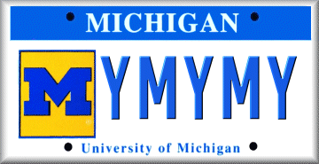There is also a special plate showing both the skyline of Detroit and the upper peninsula, and a picture of the Mackinaw Bridge. Other special plates look like the basic Michigan plate design and have either a school emblem or a special cause symbol on them.